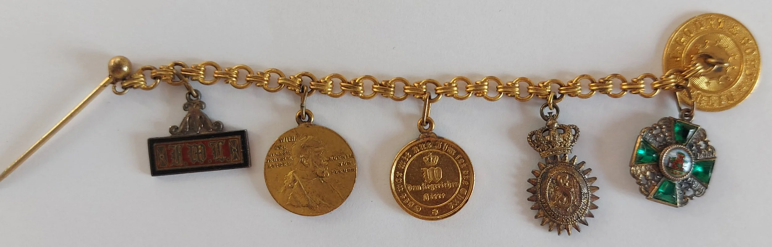 Beginn und Ende des Kettchens nehmen Badische Dekorationen ein, Anhalt folgt erst auf Rang 2 und Preußen bildet die Mitte. Es lag daher sehr nahe, im Badischen sein Glück zu versuchen. In der Tat gingen reichlich Anhaltinische Ordenszeichen nach Baden, dies ist nicht verwunderlich, da die Herrscherhäuser miteinander verwandt waren. Prinz, später Herzog Friedrich II. von Anhalt heiratete 1889 Prinzessin Marie von Baden.